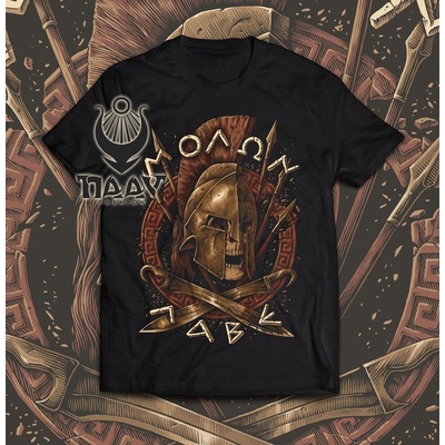 SPARTA - MOLON LABE, tričko. Slogan znamená "Pojď si pro ně!"; král Sparty Leonidas takto před bitvou u Thermopyl odmítl požadavek perského krále Xerxa, aby Řekové odevzdali...