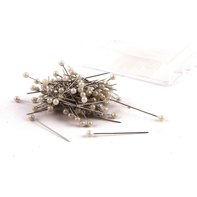 Dekorační špendlík s bílou kulatou hlavičkou. Nepostradatelná dekorace pro klopy svatebčanů. Delka 55mm, cena je uvedena za celé balení 80 ks.