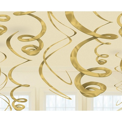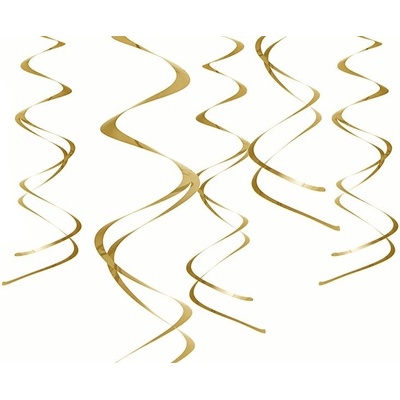 Balení 12 ks zlatých závěsných spirál. Závěsné spirály zlaté pro dekoraci Vaší párty, narozenin nebo oslavy Silvestra. Délka spirály je cca 55 cm.