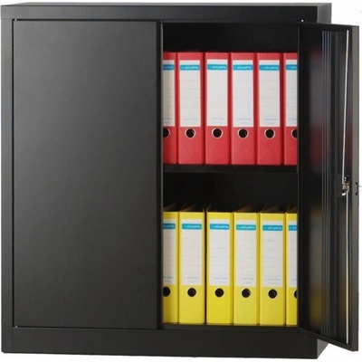 Kovová skříň E402A01 Domov pro vaše šanony Klasická kovová dvoudveřová skříň E402A01 se pyšní jednou policí v černé barvě na dokumenty nebo šanony v klasickém formátu. Díky...