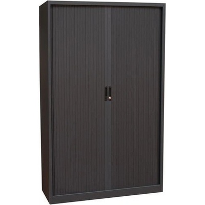 Skříň s roletou v různých barevných variantách. Výškově přestavitelné police. Cylindrický zámek, dva klíče.