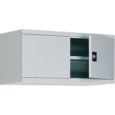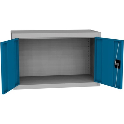 Dvoudveřová kovová skříň s jednou policí, vhodná jako nástavec. Šířka 800 mm, výška 465, hloubka 435 mm. Dvoubodový rozvorový zámek, různé barvy.