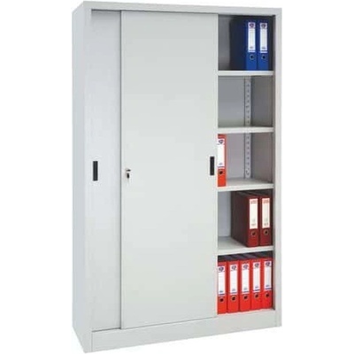 Manutan Kovová spisová skříň s posuvnými dveřmi, 4 police, 200 x 120 x 45 cm