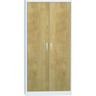 Dvoudveřová skříň se soklem, šířka 800, výška 1800, hloubka 400 mm, 4 police. Možnost náhrady plných dveří dveřmi se skleněnou výplní, s drátěnou výplní nebo lamino dveřmi v...