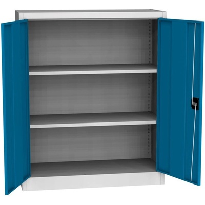 Dvoudveřová kovová skříň na šanony, 1 police, šířka 914, výška 1000, hloubka 400 mm, různé barvy. V barvě světle šedé skladem.