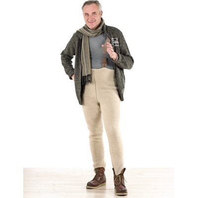 Spodky z vlny Vlněné spodky vám zaručí teplo v nejhorších klimatických podmínkách. Jsou vyrobeny ze 100% ovčího rouna Merino a doplňují je elegantní šle. Zespodu jsou gumové...