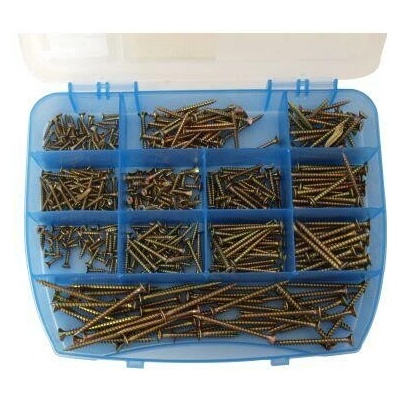 Sada praktického organizéru a 440 kusů pozinkovaných vrutů do dřeva s PZ hlavou Obsah sady: vrut celozávit 3,5 x 16 mm Zn ŽL (50 ks) vrut celozávit 3,5 x 30 mm Zn ŽL (40 ks)...