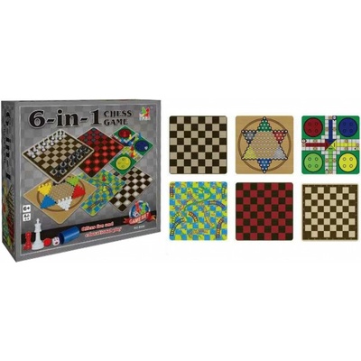 Společenská hra 6v1. Hra obsahuje člověče nezlob se, hadíky a žebříky, šachy, dámu, čínskou dámu. Pro 2 až 4 hráče. Nevhodné pro děti do 3 let. Doporučený věk od 6 let. Rozměr...