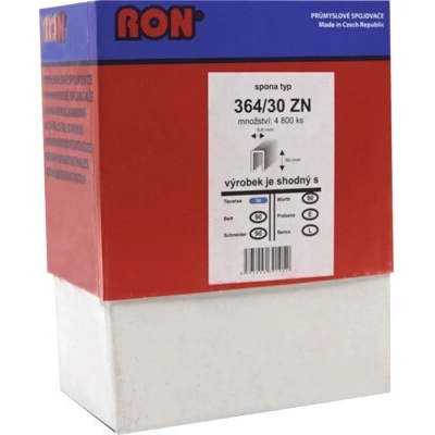 Truhlářské spony, sponky pro elektrické a pneumatické sponkovačky. Spojovače široké 5,6 mm, silné 1,28 mm a dlouhé 30 mm. Určení použití: výroba bedýnek, ptačích budek, dekorační práce, upevňování drátěných plotů a výrobků, výroba hraček, výroba košíkářských výrobků,...