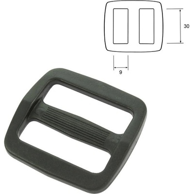 Spona průvlečná 30 mm černá. Materiál: acetal - plast. Barva: černá. Vnitřní šířka: 30 mm. Vnitřní výška: 9 mm. Celkové rozměry spony: 42 x 39 mm. Plastová průvlečná spona...