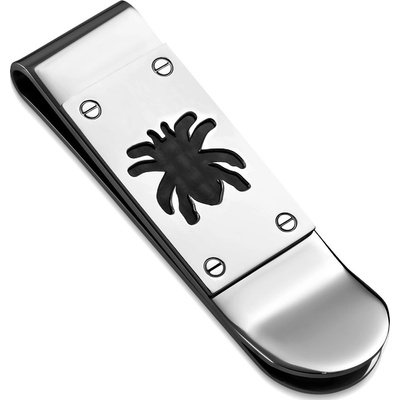 Spona na peníze stříbrné barvy s lesklou povrchovou úpravou a vyobrazením pavouka. Spona je vyrobena z kvalitní chirurgické oceli a je praktickou náhradou peněženky v případech,...