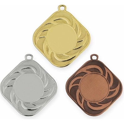 Sportovní medaile 39021 velikost 50x50mm Sportovní medaile 39021 nabízíme ve 3 variantách - zlatá, stříbrná, bronzová. Do medailí lze umístit také libovolný emblém o průměru...