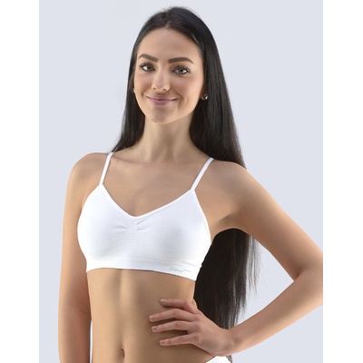 Podprsenkový top Gina 07010 s úzkými ramínky, dámské bezešvé prádlo. Dolní kraj je zesílený a zapravený bezešvým způsobem. Průramky a průkrčník jsou začištěny lemovacími...