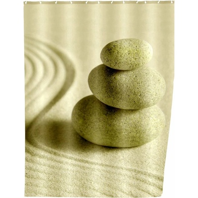 Sprcha zástěra vyrobená z odolného a voděodolného polyesterového materiálu zajistí komfort při koupání a ochrání koupelnu před postříkáním. Motiv písku a kamenů v béžových...