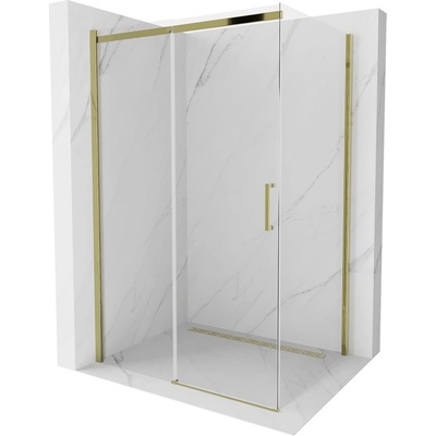 Specifikace produktu: Velikost: 100x90 cm Výška: 200 cm Strana montáže: Univerzální Vstup: Otevírací dveře Barva skla: Transparentní Povrchová úprava: Zlatá kartáčovaná Profil:...