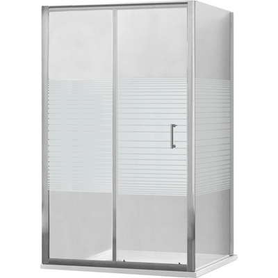 Technické údaje kabiny: Velikost: 100x100 cm (dveře 100 cm, stěna 100 cm) Výška: 190 cm Montáž: Univerzální Vstup: Posuvné dveře Barva skla: Bílé pruhy Provedení: Chrom Druh...