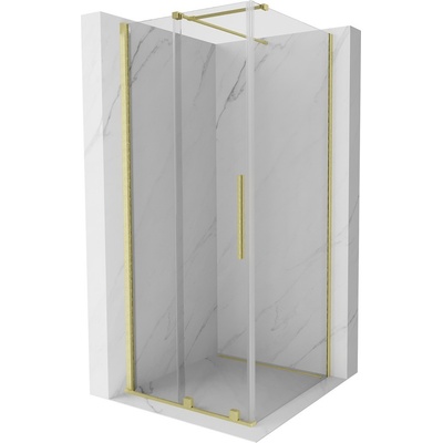 Specifikace produktu: Velikost: 100x90 cm (dveře 100 cm, stěna 90 cm) Výška: 200 cm Montáž: Univerzální Vstup: Posuvné dveře Barva skla: Transparentní Povrchová úprava: Zlatý...