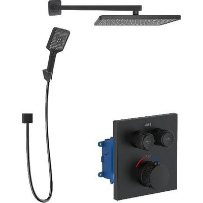 Sprchový set obsahuje: podomítkovou termostatickou baterii Grohtherm barva matná černá povrchová úprava GROHE Long-Life rozměr 158 x 158 mm kompaktní kartuše GROHE TurboStat s...