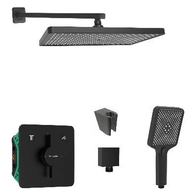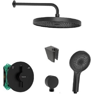 Sprchový set obsahuje: podomítkovou baterii hansgrohe DuoTurn S, s tělesem barva matná černá krycí rozeta Ø 155 mm možnost nastavení rozety v rozsahu +/- 3° kohoutkové...