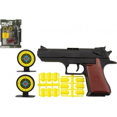 Detailní popis Pistole na pěnové náboje 2ks + špuntovka 5ks plast 30cm v krabiciSada obsahuje pistoli, která se bude líbit všem dětem, které si rády hrají se zbraněmi. Součástní jsou i pěnové náboje, které je možné z pistole střílet na jakýkoli terč. Vhodné od 6 let.