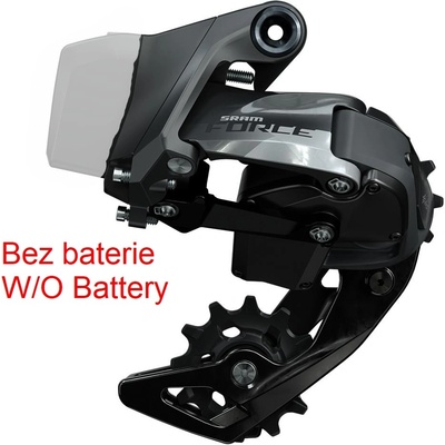 Bezdrátový elektronický přesmykač SRAM Force eTap 2x12 s uchycením na navářku. Přepracované provedení je optimalizováno pro 13zubový rozdíl mezi převodníky X-Range a a...