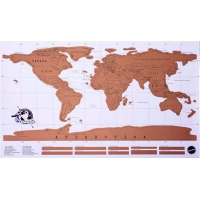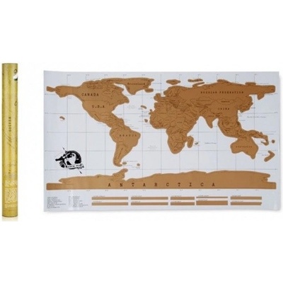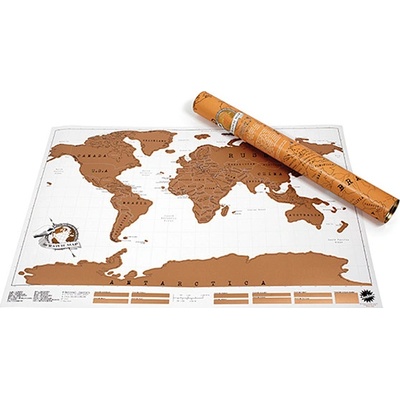 Na první pohled obyčejná mapa světa. Na ten druhý však zcela unikátní. Povrch je pokryt zlatou stírací vrstvou, na černém pozadí, jako jsou loterijní stírací losy. Stejně jako u nich lze zlatou vrstvu mincí lehce seškrábnout. Geniální dárek pro cestovatele a...