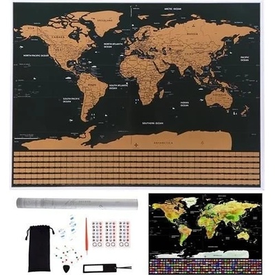 Na první pohled obyčejná mapa světa. Na ten druhý však zcela unikátní. Povrch je pokryt zlatou stírací vrstvou, na černém pozadí, jako jsou loterijní stírací losy. Stejně jako u...