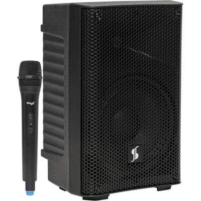 Dvoupásmový aktivní 8" reprobox s vestavěným zesilovačem 125W RMS. Možnost napájení ze sítě nebo pomocí zabudovaného akumulátoru Li 12V/2000mAH, integrovaný multimediální přehrávač MP3 s USB portem, možnost BT připojení, 2-pásmové korekce, 1x UHF ruční bezdrátový...