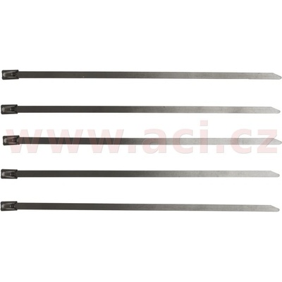 Stahovací páska z nerezové oceli se zaoblenou hranou. Parametry: Šířka pásku: 4,5 mm Celková délka pásku: 370 mm Rozsah: 102 mm Tloušťka pásku: 0,3 mm Pevnost v tahu: 46 kg