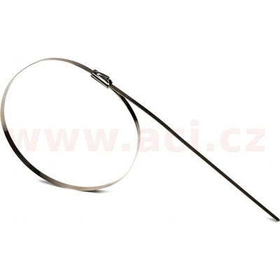 Stahovací páska z nerezové oceli se zaoblenou hranou. Parametry: Šířka pásku: 7,94 mm Celková délka pásku: 500 mm Rozsah: 150 mm Tloušťka pásku: 0,3 mm Pevnost v tahu: 114 kg