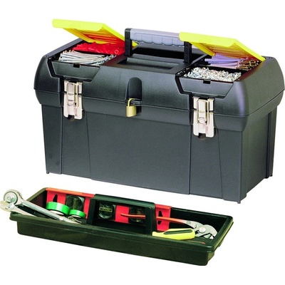 Box na nářadí Stanley 2000 Series 1-92-065 s centrální kovovou přezkou a vnitřní výjimatelnou přihrádkou. Dva organizéry na šroubky a vruty ve víku. Rozměry 41,1x19,9x18,5 cm.