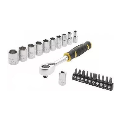 Profesionální ráčna s přepínací páčkou, aretací a bimateriální rukojetí.72 zubů, 5°zpětný krok.Chromovaný, leštěný povrch hlavic. Obsah sady:3/8" ráčna10x 3/8" 12 hranné...