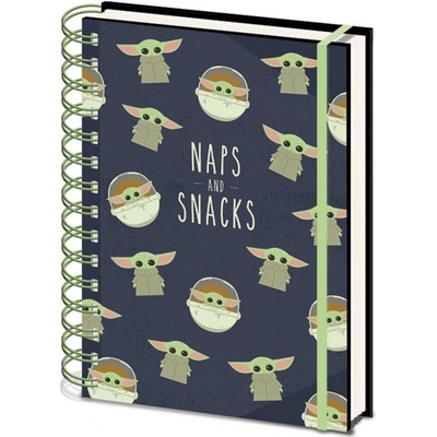 Zápisník Star Wars: Mandalorian - Snacks And Naps pro fanoušky Mandaloriana a Baby Yody kroužková vazba zavírání na gumičku oficiálně licencovaný produkt Z předaleké galaxie k...