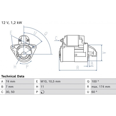 délka 1 [mm]: 69,00 mm; Délka 2 [mm]: 5,50 mm; Výkon startéru (v kW): 2,00 kW; Napětí: 12 V; počet upevňovacích otvorů: 3 ; Počet závitů: 0 ; Směr otáčení: směr otáčení ve...