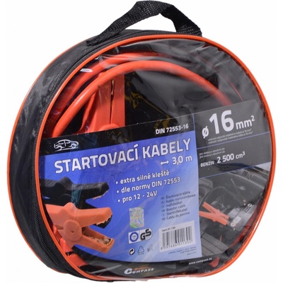 Tyto startovací kabely jsou určeny pro nouzové startování vozidel s benzinovým motorem do objemu 2500 cm3. Délka 3 metry, vodivostí odpovídá měděnému kabelu o průměru 16 mm2....