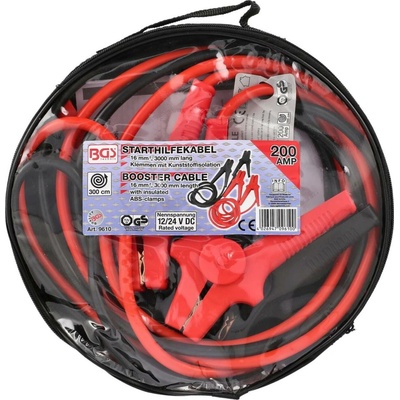průřez kabelů 16 mm2, proudové zatížení max. 200 A Pomocné startovací kabely BGS technic pro benzinové osobní automobily - S izolovanými koncovkami - V praktickém úložném...