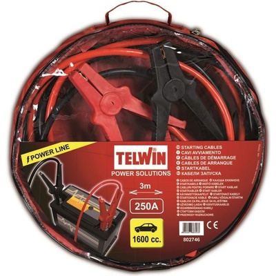 - Startovací kabely 250 A Telwin pro nouzové nastartování, délka 3 m, s testerem baterie - indikace nabití 3 led diody. Klíčové parametry: startovací kabely 250 A 16 mm² -...