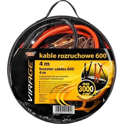 Startovací kabely jsou určeny pro osobní a dodávkové vozy. Jsou vhodné pro startování motorů do 3000 cm3. Délka kabelů je 4m.