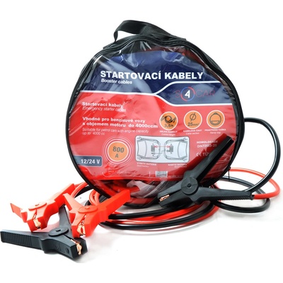 Klasické startovací kabely. Izolované klešťové svorky. Délka 4m. Vodiče o síle 25mm2. Dodáváné v plastikové tašce.