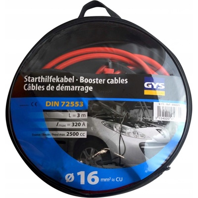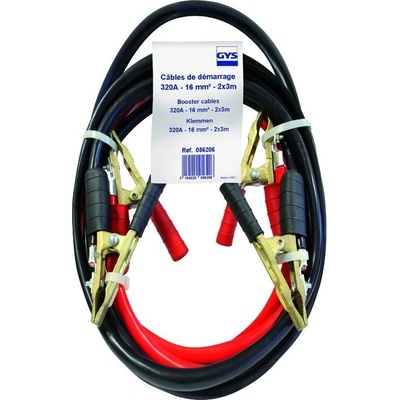 Startovací kabely GYS PROFI 320A, 3m, 16mm (056206) Měděné startovací kabely francouzské společnosti GYS s maximálním proudem 320A, průměrem drátu 16 mm a mosaznými...