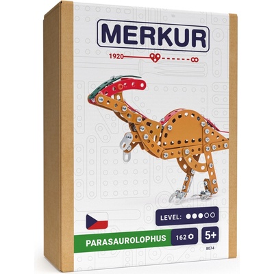 MERKUR 8074 Dinosauři: Parasaurolophus. Kvalitní, kovová konstrukční stavebnice, 162 dílků, model 20cm, součástí návod + pracovní nářadí. Vyrobeno v Česku. Kovový model...