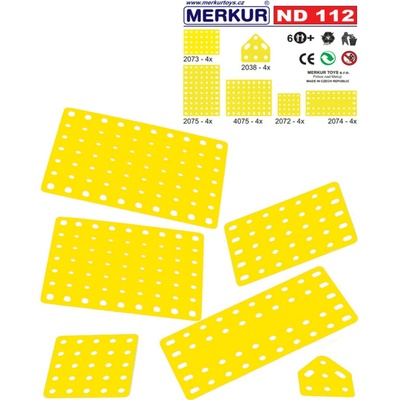 Doplňková sada velkých destiček ve žluté a bílé barvě z plastu pro stavebnici Merkur. Nejznámější česká hračka Merkur. Merkur vznikl počátkem minulého století v Polici nad...