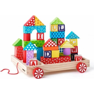 Hračka je kombinací tahací hračky a stavebnice. Dítě se naučí rozlišovat barvy a tvary. Díky kostkám může stavět hrady, věže a jiné stavby. Hračka podporuje vývoj...
