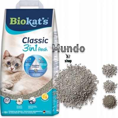 BIOKAT'S Classic 3v1 Fresh cotton blossom 10 l bentonitové stelivo s vůní bavlny Bentonitový, hrudkující stelivo pro kočky. Stelivo s vůní květu bavlny a jasmínu je mimořádně...