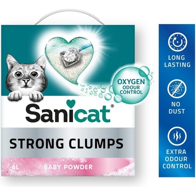 Sanicat Strong Clumps je ultra hrudkující stelivo pro kočky s vůní dětského pudru. Okamžitě po použití kočičí toalety vytvoří pevné hrudky, které se snadno nabírají. Kočičí...