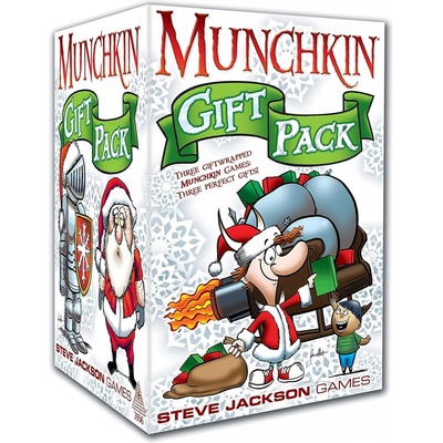 Tři hry ze světa Munchkin v dárkovém balení, s jmenovkami, přáníčkem a pěti novými kartami. To vše v jedné krabici. Munchkin Gift Pack obsahuje jinka těžko sehnatelné hry...