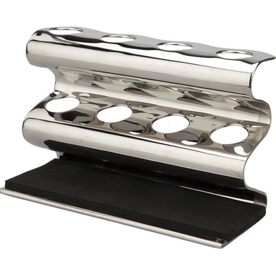 Stojánek z nerezové oceli 316Ti pro žiletkové holicí strojky. Pojme holicí strojky o průměru do 14 mm. Zespodu stojánku je cca 3 mm otvor pro odtok přebytečné vody. Výška 30...