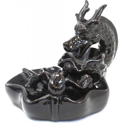 Dekorativní velký stojan (fontána) na vonné kužely s efektem tekoucího dýmu v provedení Dračí jezírko. Čtyři plochy pro usazení dýmu. Figura dračí hlavy, velké jezero a tři...