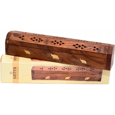 Stojan na vonné kužely truhlica + 10 kuželů, santalové dřevo, 7,5 x 4,2 x 6,5 cm Zavíratelný ozdobný dřevěný stojan s úložným prostorem umožňuje pálení vonných kuželů. Součástí...