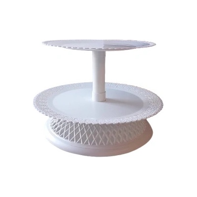 Proč právě tenhle stojan? Krajkový design – decentní, ale nepřehlédnutelný Univerzální velikost – průměr vrchního tácu 30 cm ideální na menší dort a průměr 35 spodního tácu...